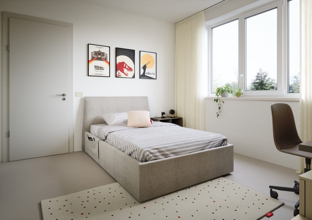 La struttura può essere interamente in pannello oppure combinare una struttura in pannello con una testiera imbottita: in entrambi i casi, le finiture in toni neutri come il bianco, l’avorio o il grigio perla garantiscono un risultato armonioso e senza tempo. Per le bambine più piccole, un letto con elementi decorativi delicati diventa subito il centro della stanza. Per le ragazze, una testiera più strutturata e dal carattere più adulto permette di costruire una cameretta destinata a non invecchiare.