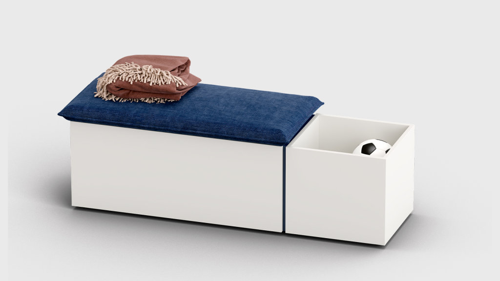 La cassapanca Pank è un complemento d’arredo essenziale per ottimizzare lo spazio e l’organizzazione nella cameretta di bambini e ragazzi, offrendo una preziosa doppia funzione. Principalmente, funge da pratico contenitore per giochi, indumenti, libri e altri oggetti, aiutando a mantenere l’ordine con efficacia. È inoltre disponibile anche con un vano aperto aggiuntivo laterale, pensato per ampliare ulteriormente la capacità contenitiva.