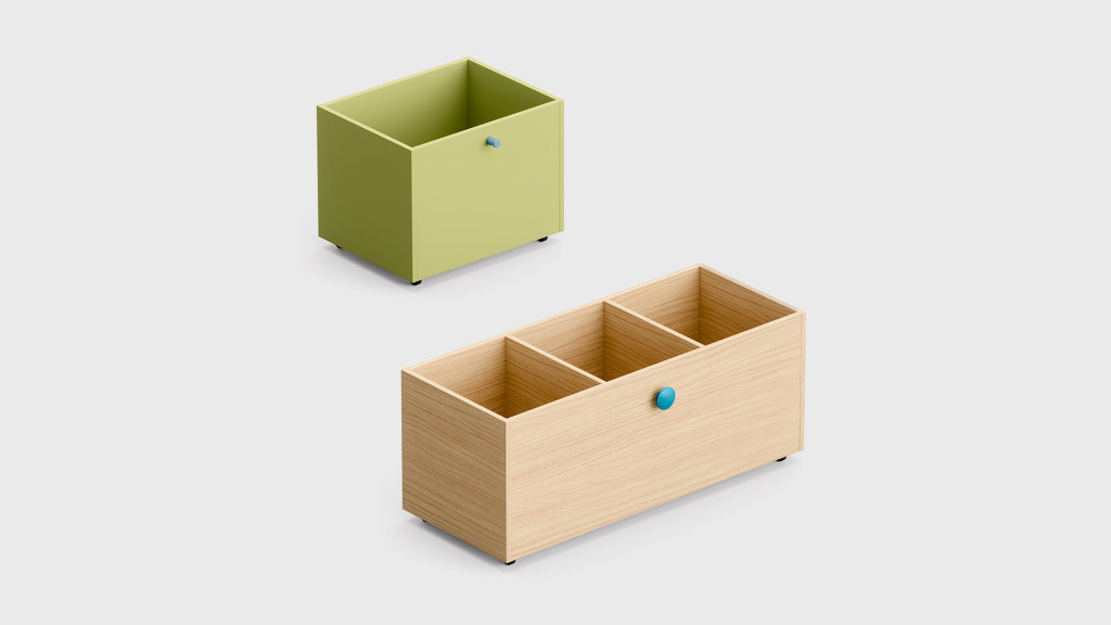 Il contenitore su ruote Tynn è la soluzione ideale per mantenere ordine nella cameretta di bambini e ragazzi. Progettato per riporre con comodità i giocattoli e altri oggetti, è disponibile in due pratiche versioni: a uno o tre scomparti, permettendo di organizzare al meglio lo spazio interno in base alle necessità. Equipaggiato con ruote, questo contenitore è facilmente spostabile, consentendo ai ragazzi di portarlo agevolmente nell’area gioco e di riporlo con altrettanta semplicità.