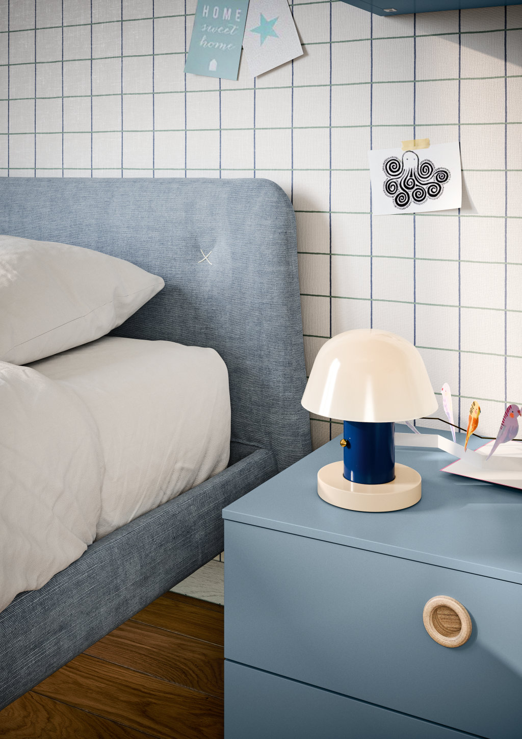 Una cameretta moderna si definisce anche attraverso i dettagli che la rendono unica. Le carte da parati permettono di caratterizzare una parete con grafiche coordinate al resto dell’arredamento. Pomelli, maniglie ed elementi imbottiti completano la personalizzazione senza richiedere investimenti significativi.