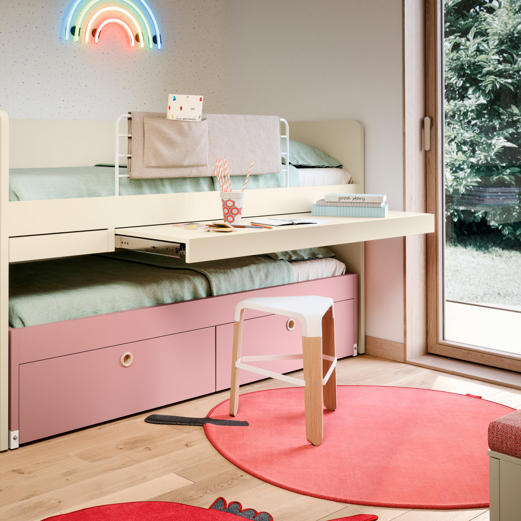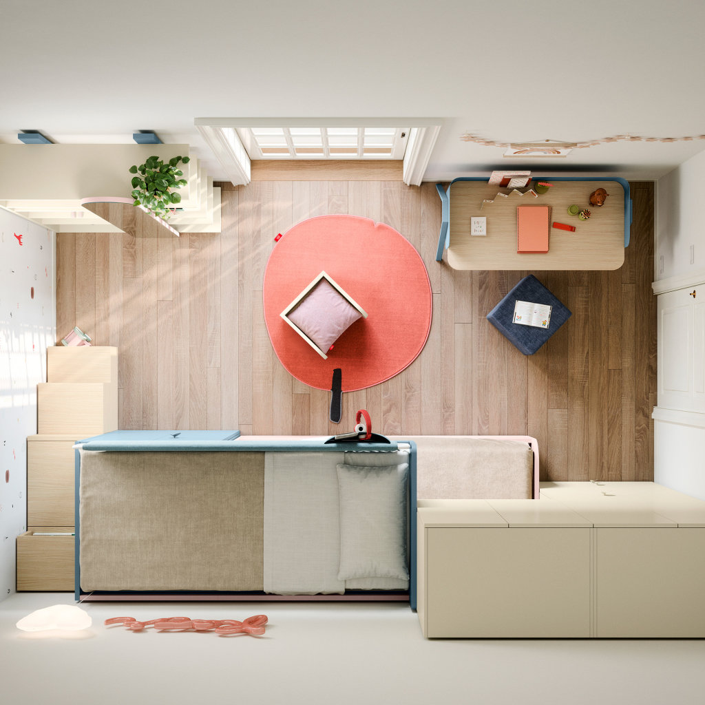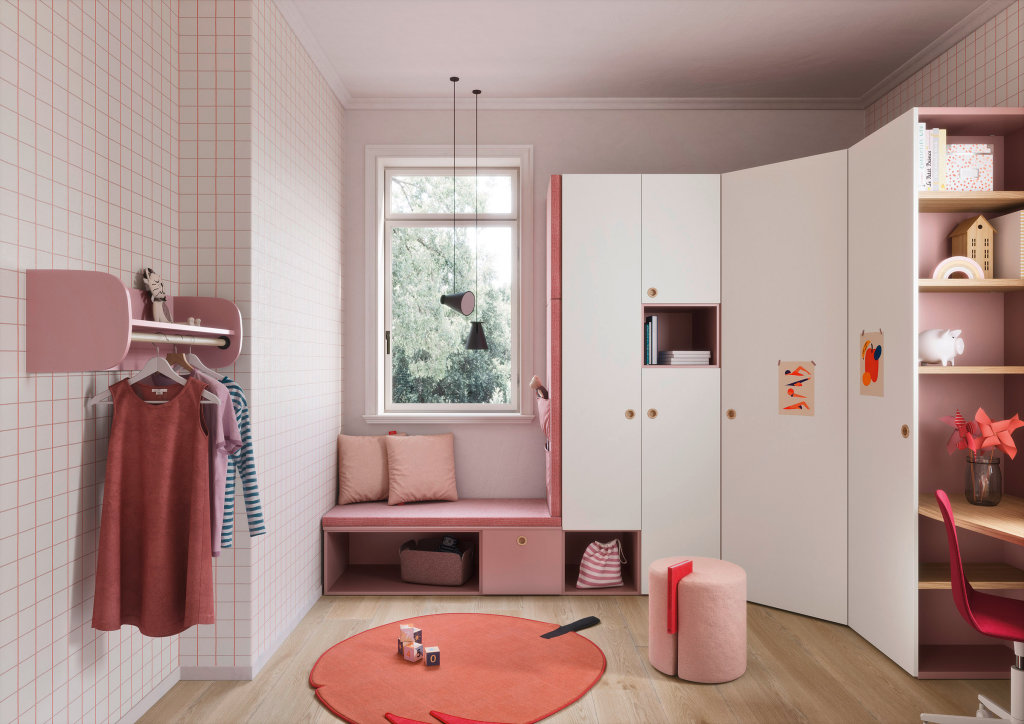 Il tappeto Apple è progettato per adattarsi in modo versatile alle diverse esigenze di arredo della cameretta. Pur potendo essere utilizzato efficacemente da solo, la sua forma si presta a essere abbinata a un altro tappeto di colori e geometrie diverse o a un pouf coordinato.
