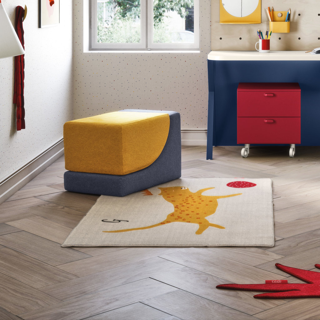 Il design a forma di animale lo rende particolarmente attraente per i più piccoli, mentre il suo colore vivace si abbina con facilità a una vasta gamma di finiture d’arredo Nidi. Il tappeto Felix arricchisce l’ambiente, rendendolo più caldo, accogliente e stimolante per ogni tipo di attività ricreativa.