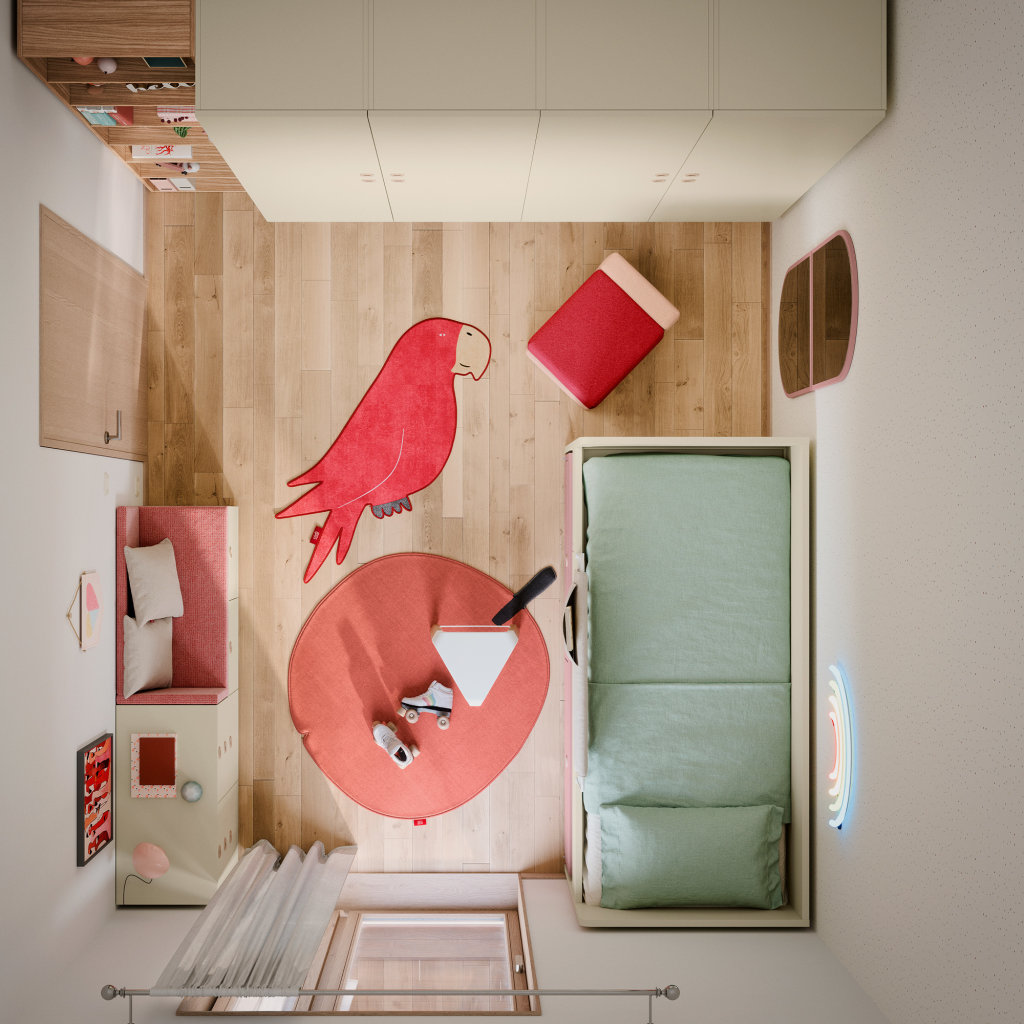 l tappeto Parrot si dimostra estremamente funzionale nella gestione dello spazio. La sua forma accogliente lo rende un ottimo tappeto scendi letto o un invitante punto focale al centro stanza, offrendo una superficie ideale per distendersi a leggere o per le attività con gli amici. Pur potendo essere utilizzato da solo per la sua forte valenza estetica, il tappeto è pensato per la flessibilità