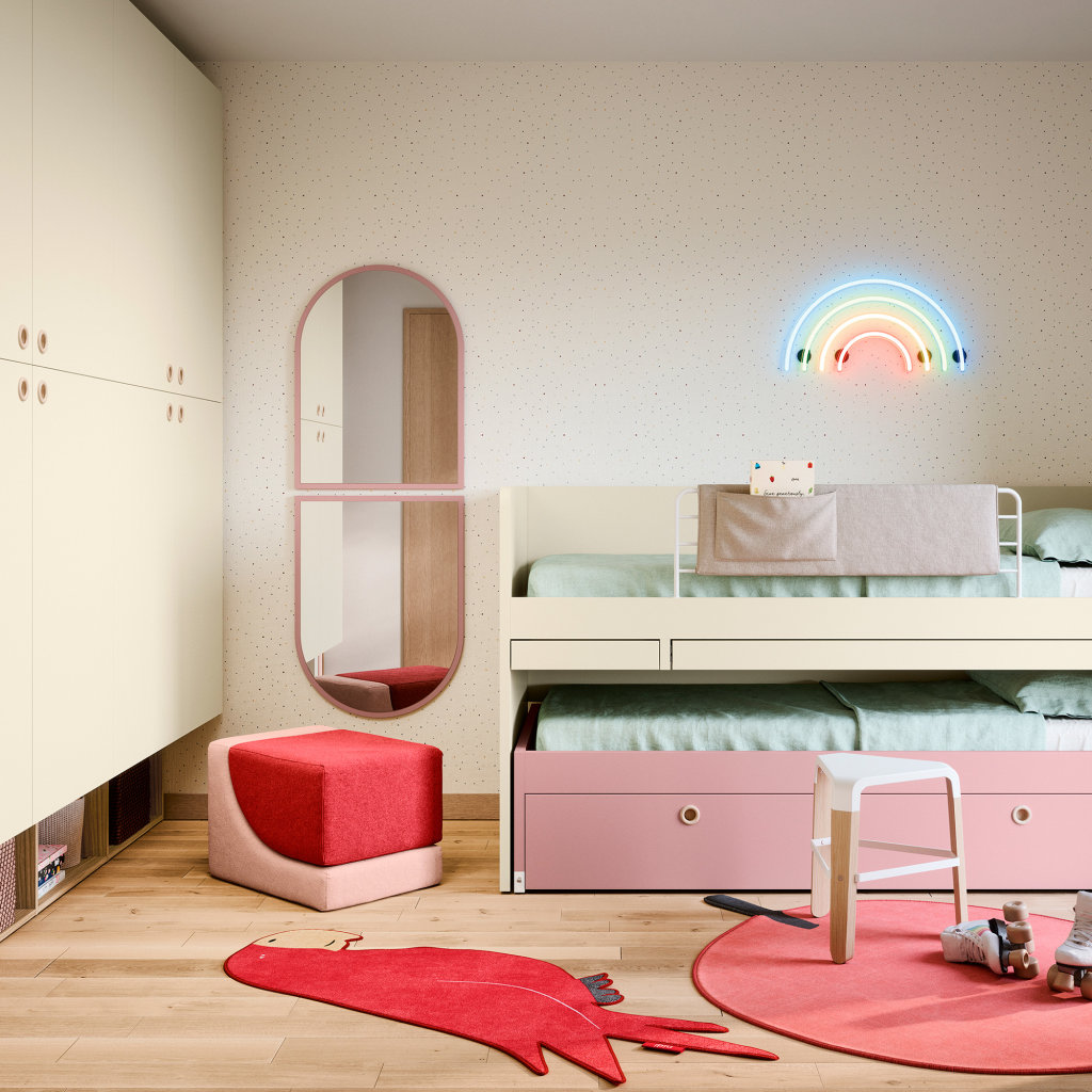 d’arredo: può essere efficacemente abbinato a un altro tappeto dalle forme neutre o a un pouf coordinato. Questa modulabilità consente di creare un’area morbida e intima, definendo lo spazio ludico con un design che è contemporaneamente giocoso e di carattere.